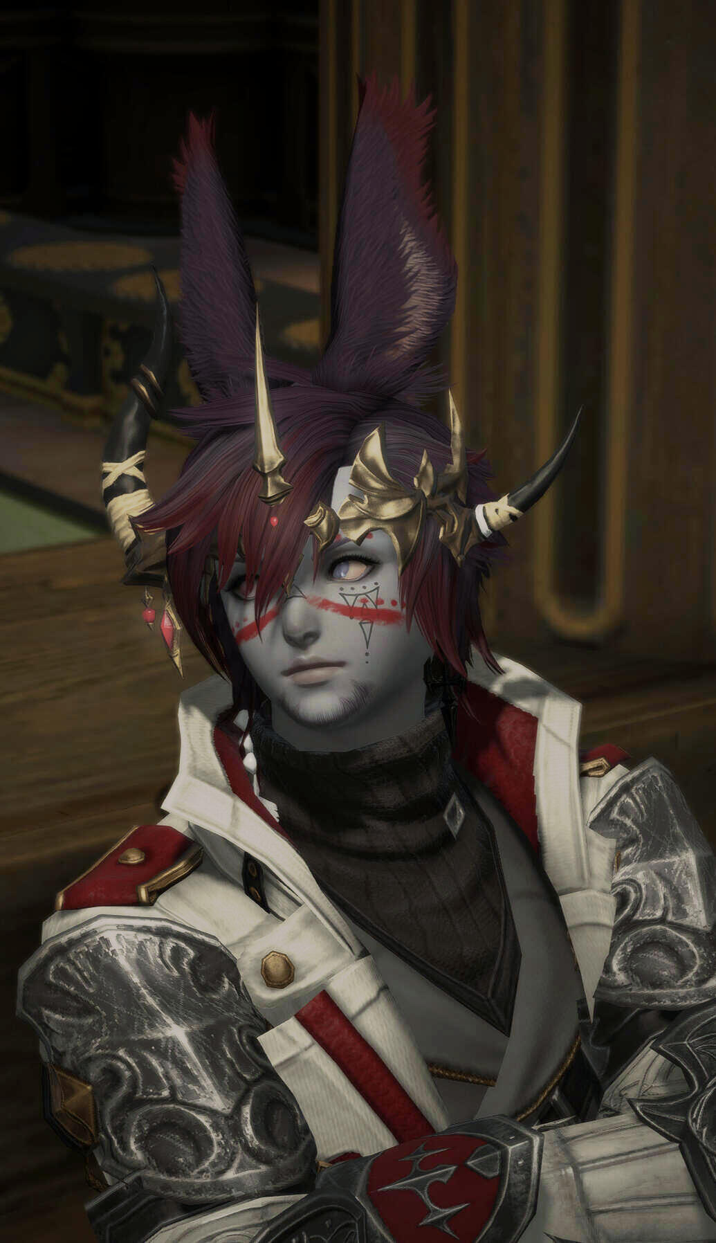 When the Scions were wrongly accused of the murder of the Sultana Mali was forced to flee northward into Ishgard with the few remaining members. With the recent influx of Doman refugees he no longer had to hide his appearance, but instead he had to hide from the very Grand Companies he had once helped establish so long ago.Much as had happened in the past, he was swept up in the Scions' adventures as they returned to their numbers one by one, and helped them bring an end to the Dragonsong War. He thought that would finally be the end of it; Nidhogg slain, peace achieved, the Scions' reputation in Eorzea restored. Finally he could put his blade down and rest.