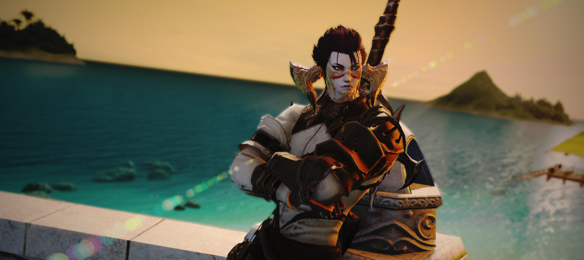 And awoke in a healer’s bed. The eye he thought he had lost had returned, though he no longer recognized it as it had turned a deep shade of red. Apparently he had been found on the side of the road and brought to a healer in Red Rooster Stead, just outside of Limsa Lominsa. Taking it as a sign, he rushed to the island that he had once called home...and found that it had been entirely obliterated by the Calamity. The Dark Harvesters were no more.