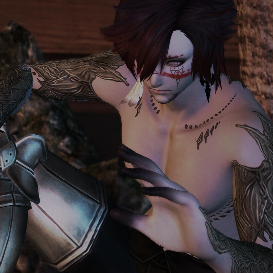 Has a long, scaly-looking tail and hardened skin not unlike scale patterns seen on au ra…or voidsent. He claims he has au ra parentage on his mother's side.